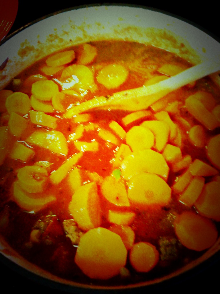 After making this today - I wanted to add a few pictures of the yummy stew and note a few changes. I didn't put in the bel pepper. I only added 2 Large red potatoes as apposed to the 6-7 Grandma suggested. Her pot was obviously bigger than mine! As well, I had to add some beef broth to this. Her tomatoes were always fresh home grown canned tomatoes and I used Organic stewed tomatoes from the store. Their consistency was thicker than what hers was - so therefore I needed more broth!